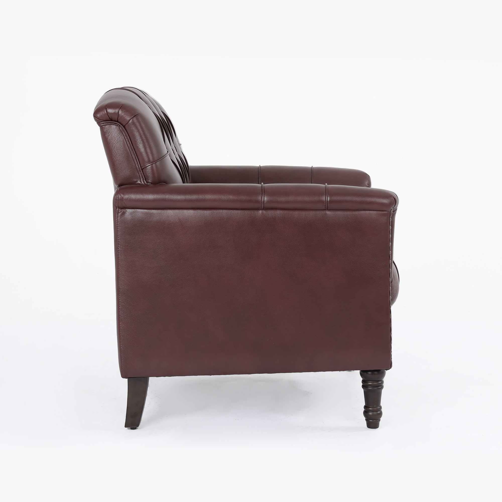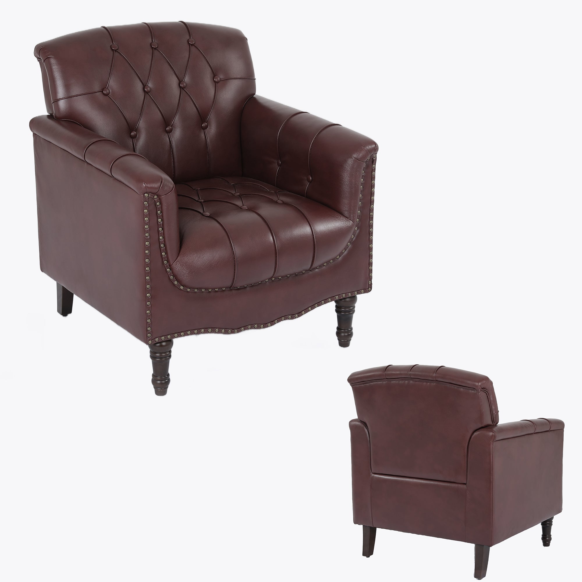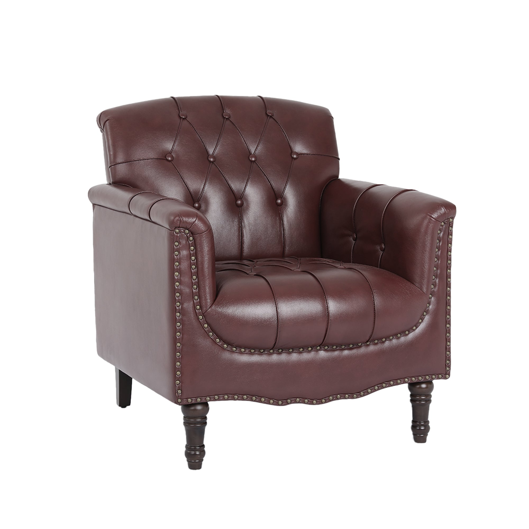 Relax in style with this tufted faux leather chair, designed to bring both elegance and everyday comfort to your home. Deep button-tufted upholstery and high-density foam cushioning cradle you in soft support, while rolled arms and a solid wood frame provide lasting durability. Perfect for curling up with a book, enjoying a quiet moment, or entertaining guests, it creates a warm and inviting atmosphere in any living room, study, or office.